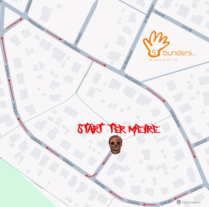 We vertrekken stipt om 18u00 aan het verlaten speelplein van "Ter Meire" waar er enkel nog restanten liggen van oude skeletten.